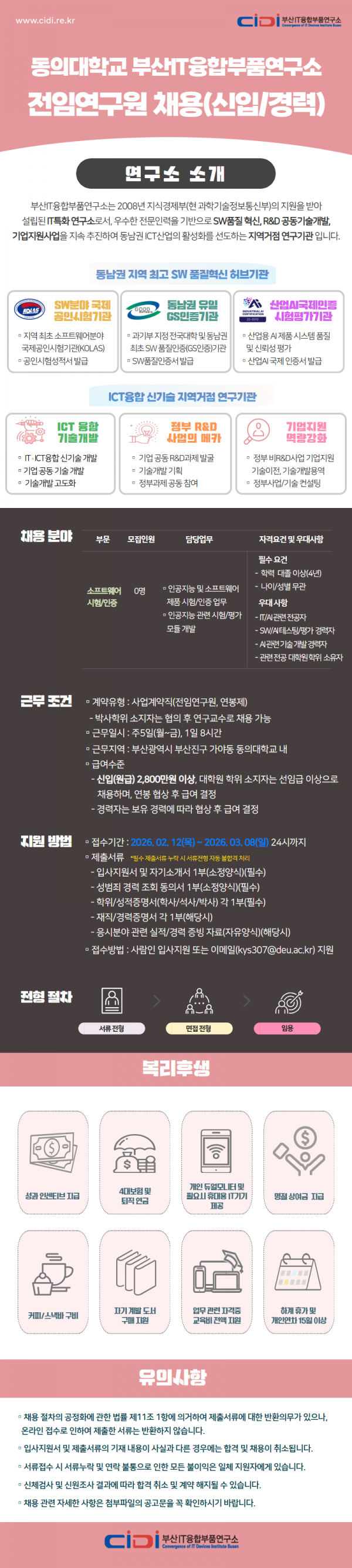 2026년도 부산IT융합부품연구소 전임연구원 채용(~3/8)
